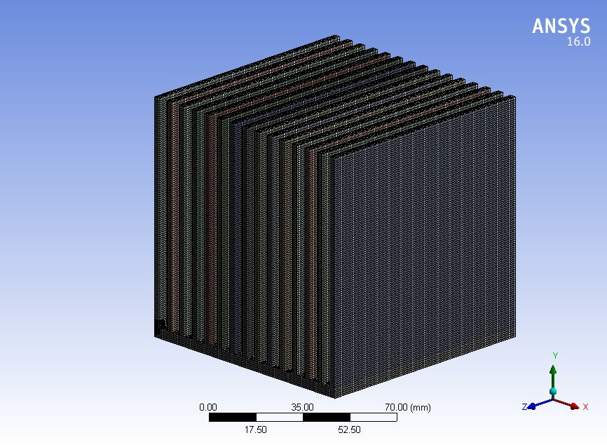 According to satisfy all the requirements heat sink was designed. To validate numerical calculation CFD (Ansys Fluent) was used. Some of simulation results are shown below.