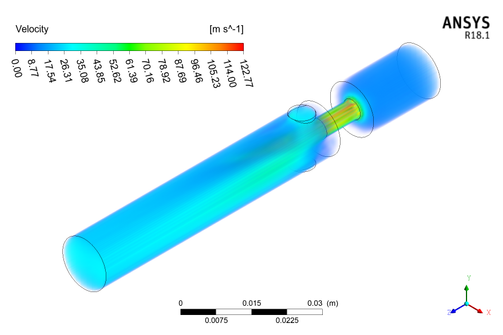 The final carburetor design was achieved through few failure models. However, the final model was able to operate an IC engine without any failure. Series of CFD simulations (Ansys Fluent) was used to study the gas, fuel mixing procedure and to evaluate the air fuel ratio at the carburetor outlet port. Some of simulation results are shown below pictures.